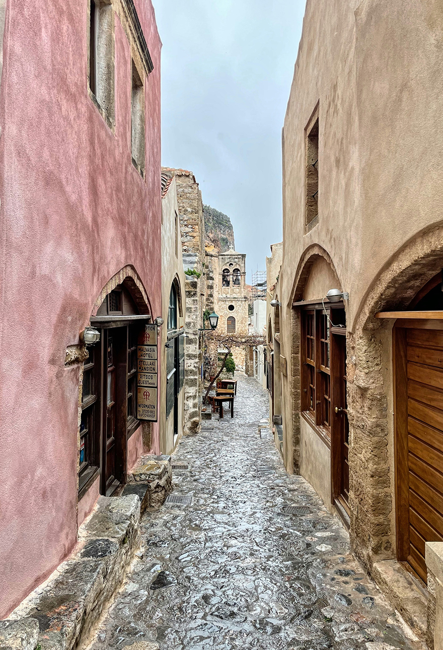 Monemvasia looks like it has jumped out of the Medieval Era. The Old Town and the Castle have been built literally on the slopes of a huge rock that stands into the sea.